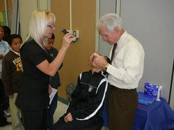 Dr. Snow doing a dental screening on a fourth grade student.